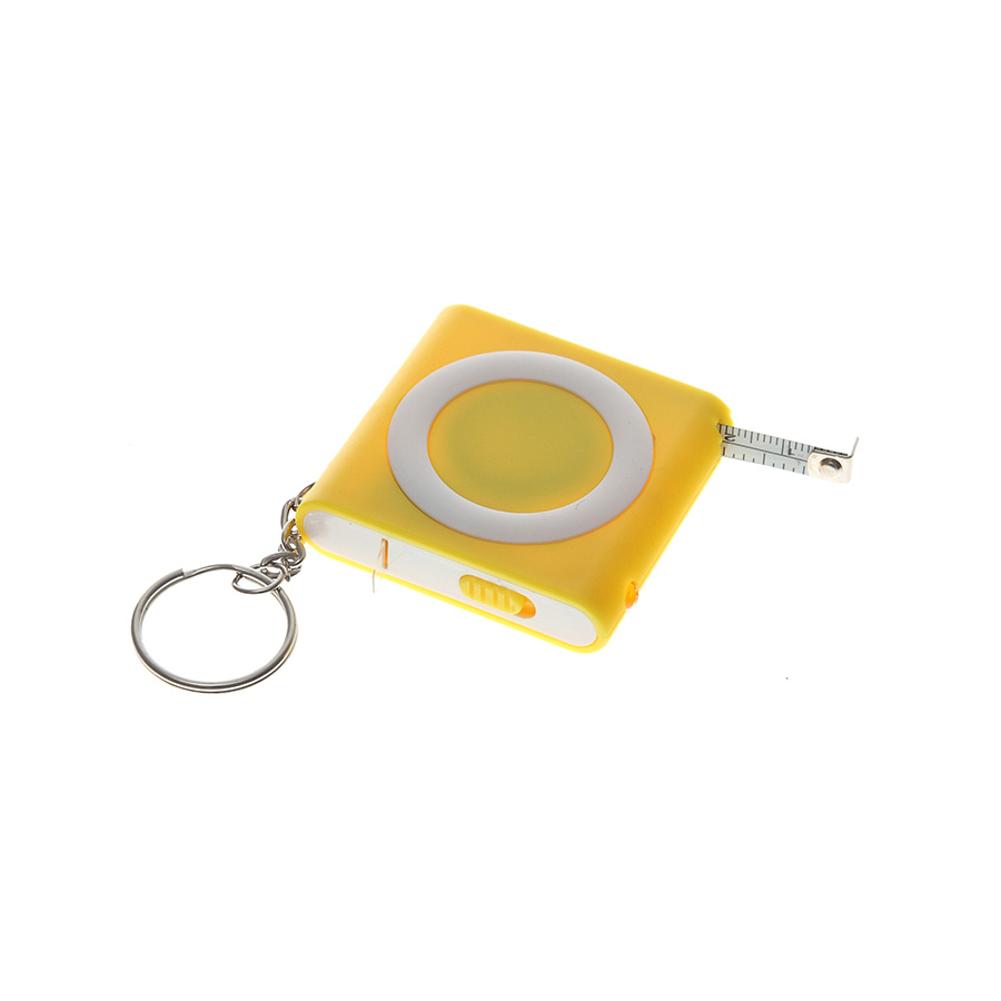 Брелок-рулетка (1м) с фонариком; желтая, 5х5х1,2см, пластик