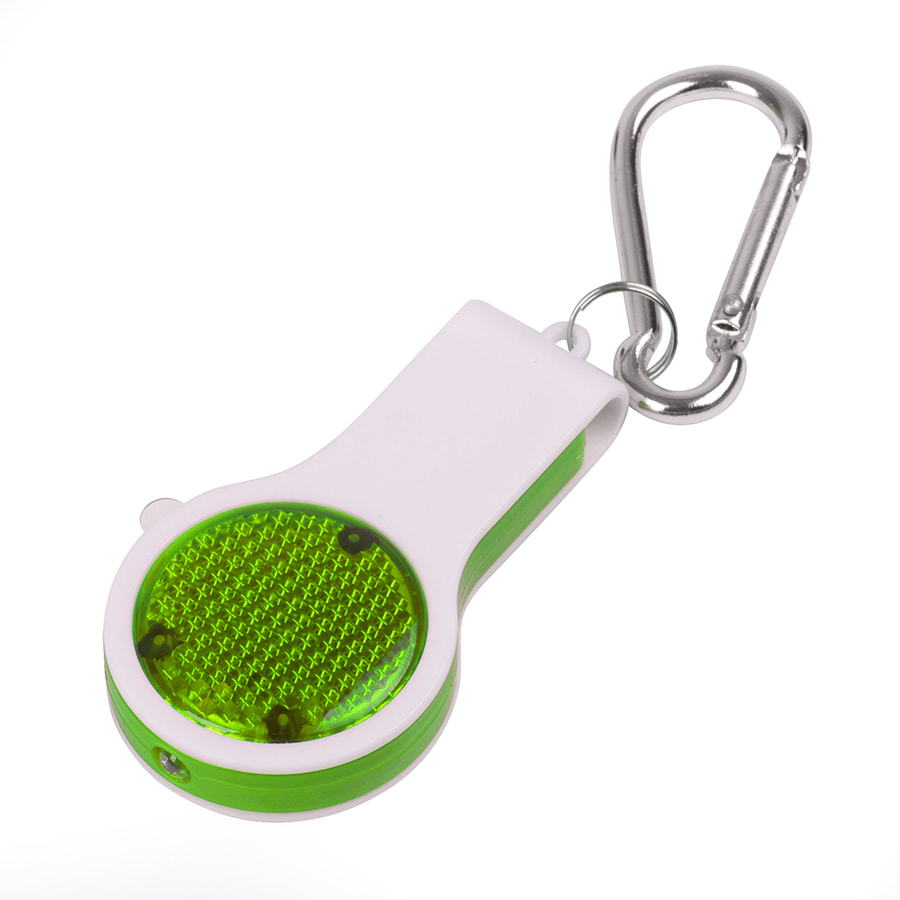 Брелок FLOYKIN со свистком, фонариком и светоотражателем на карабине, зеленый с белым,3,7х6,7х1,5см