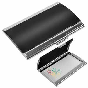 Визитница двухсторонняя "Дубль"; черный матовый; 9,3х6,1х1 см; металл; лазер. гравир., тампопечать 1
