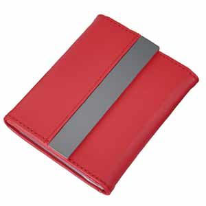 Визитница «Меридиан»; красный; 9,5х6,4х1,6 см; иск. кожа, металл; лазерная гравировка