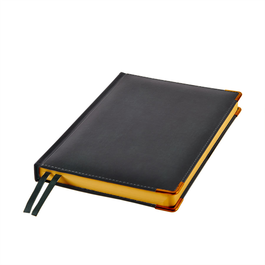 Цвет обложки, близкий к пантону 5535C Размер 147*215 мм, переплет твердый Обложка рециклированная кожа Cromwell Блок полудатированный, в линейку Скругленные углы Золотой обрез Металлические позолоченные уголки Бумага кремовая, плотность 70г м2 Форзац нахзац кремовые 400 страниц Двойное ляссе в цвет обложки Подарочная коробка