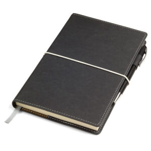 Цвет PU внешней обложки, близкий к пантону Black С Цвет PU внутренней обложки, близкий к пантону 109С Размер 130*210 мм, переплет гибкий Контрастная прострочка по периметру Внешняя обложка PU Bondy с клапаном Внутренняя обложка PU Velvet Блок недатированный портфолио, в линейку Скругленные углы Бумага кремовая, плотность 70г м2 Форзац нахзац кремовые 272 страницы 8 инфостраниц для путешествий Ляссе в цвет обложки Упаковка крафтовый сливбокс