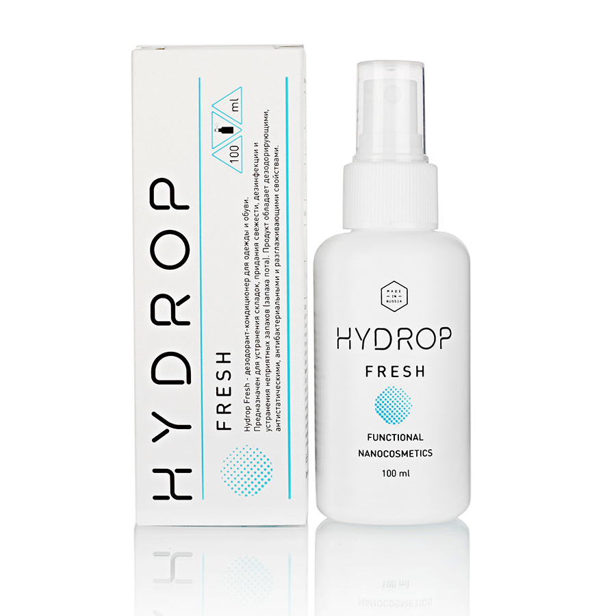 Hydrop Fresh — “жидкий утюг” или спрей для одежды от запаха и складок.Hydrop Fresh позволяет разгладить складки на ткани без использования классического утюга и придать обуви и одежде свежесть. Средство обладает дезинфицирующими свойствами, благодаря чему устраняет неприятные запахи. Обращаем ваше внимание, что использование средства не является полноценной заменой стирке.Для достижения описанного эффекта необходимо нанести средство на одежду так, чтобы ткань стала слегка влажной. После этого необходимо разгладить складки руками, расположить одежду на горизонтальной поверхности или повесить на вешалку так, чтобы новые складки не образовывались и дождаться высыхания продукта. При первом использовании на предмете одежды убедитесь в том, что средство не вызывает изменения цвета вещи на незаметном участке.Наилучший эффект достигается при использовании средства на тканях полностью из натуральных волокон или из натуральных волокон с добавлением синтетических. При использовании средства на полностью синтетических тканях эффект устранения складок может быть менее выражен.Чтобы использовать Hydrop Fresh как дезодорант для одежды от запаха необходимо просто нанести средство на ткань и дождаться высыхания. Hydrop Fresh также станет ответом на вопрос “Как избавиться от запаха в обуви?”. Для этого необходимо нанести средство на внутреннюю поверхность обуви и дождаться полного высыхания.Hydrop Fresh поможет вашим вещам дольше оставаться свежими между стирками.Объем 100 мл.Срок поставки в рамках заказной программы составляет 3-5 рабочих днейПродукции компании «HYDROP» много не бывает. Чтобы заказать её в необходимом количестве, обращайтесь к персональному менеджеру. Он сориентирует по стоимости и срокам поставки.