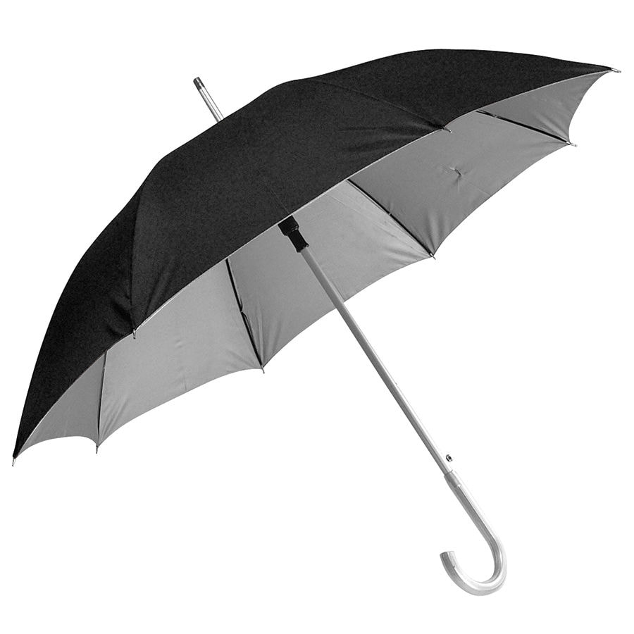 HomeНовинки Зонт-трость с пластиковой ручкой «под алюминий» «Silver», полуавтомат; черный с серебром; D=103 см;