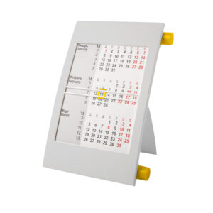 Календарь настольный на 2 года; белый с желтым; 18х11 см; пластик; тампопечать, шелкография 1993 ₸