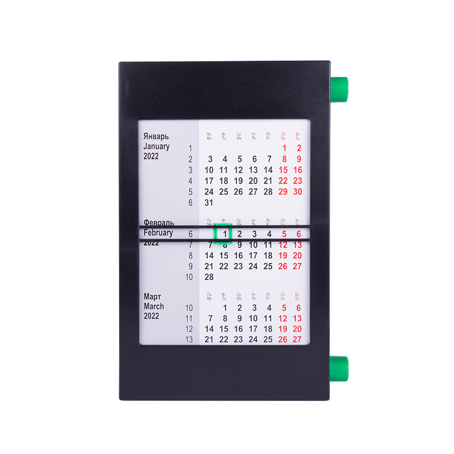 HomeНовинки Календарь настольный на 2 года; черный с зеленым; 18х11 см; пластик; тампопечать, шелкография