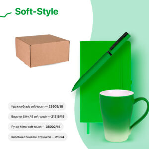 Набор подарочный SOFT-STYLE: бизнес-блокнот, ручка, кружка, коробка, стружка, зеленый 5836 ₸