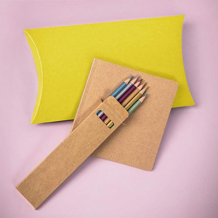 Набор подарочный PAINTER: Скетчбук-блокнот BLOCK, 40 листовартикул 33900материал: Крафтовая обложка 400 гр, листы выполнены из крафта, 70 гр. размер: 14,5 х 14,5 см.Набор цветных карандашей METALLIC, 6 цветовартикул 32807материал: дерево, картонразмер: 18 x 4,5 x 0,8 см