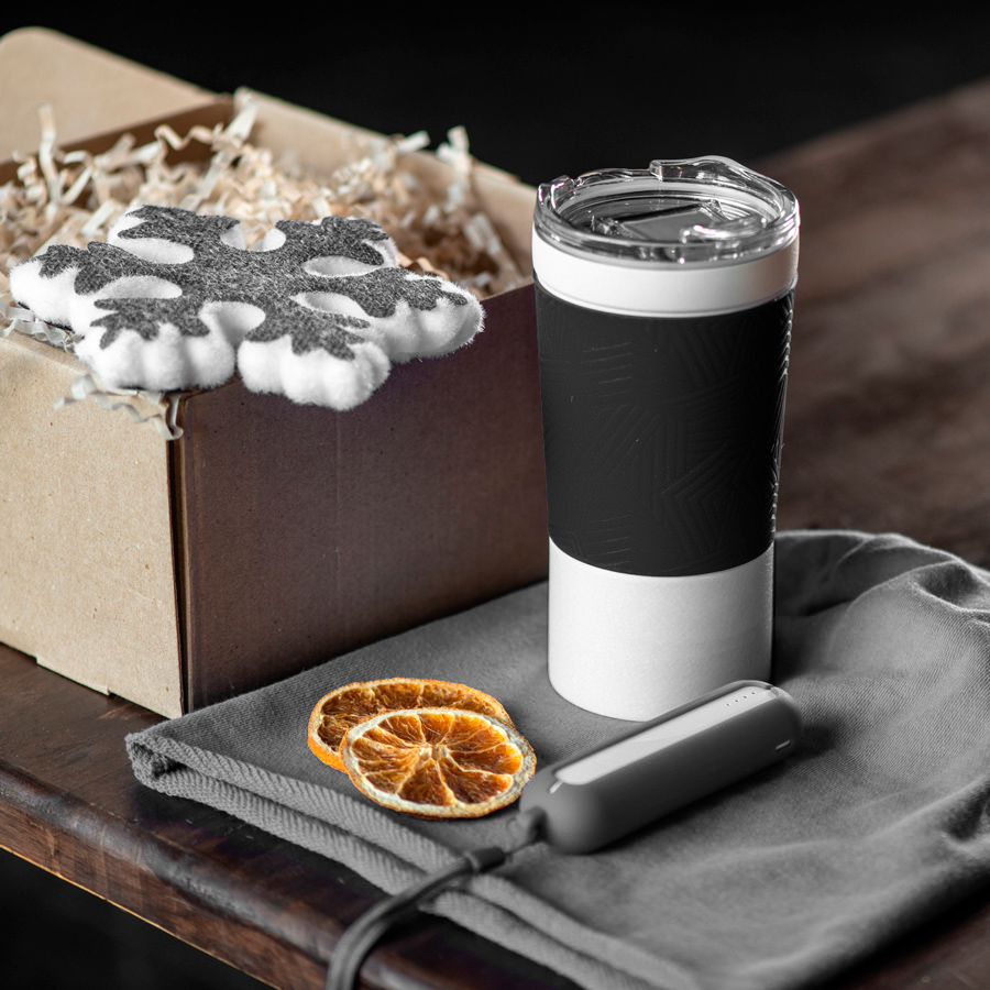 Набор ACTIONLIFE: термокружка, шапка, украшение, зарядное устройство, коробка, серый