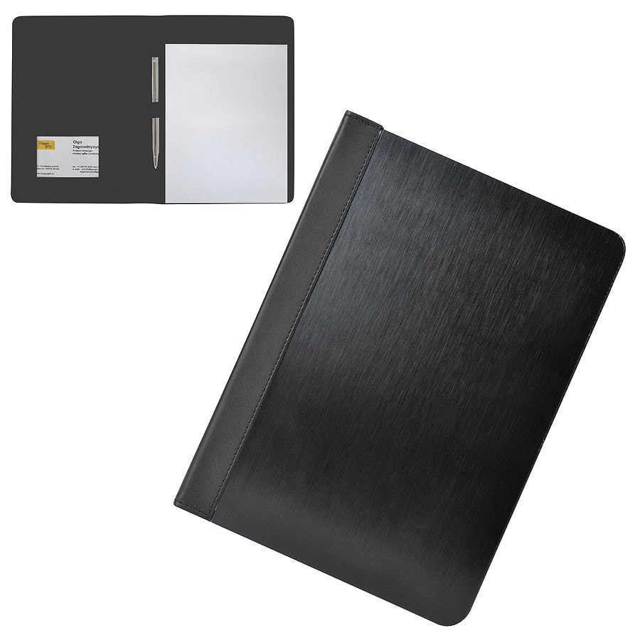 Папка А5 с блокнотом «Aluminium», черная, 23x17x1.5 см, иск. кожа, алюминий