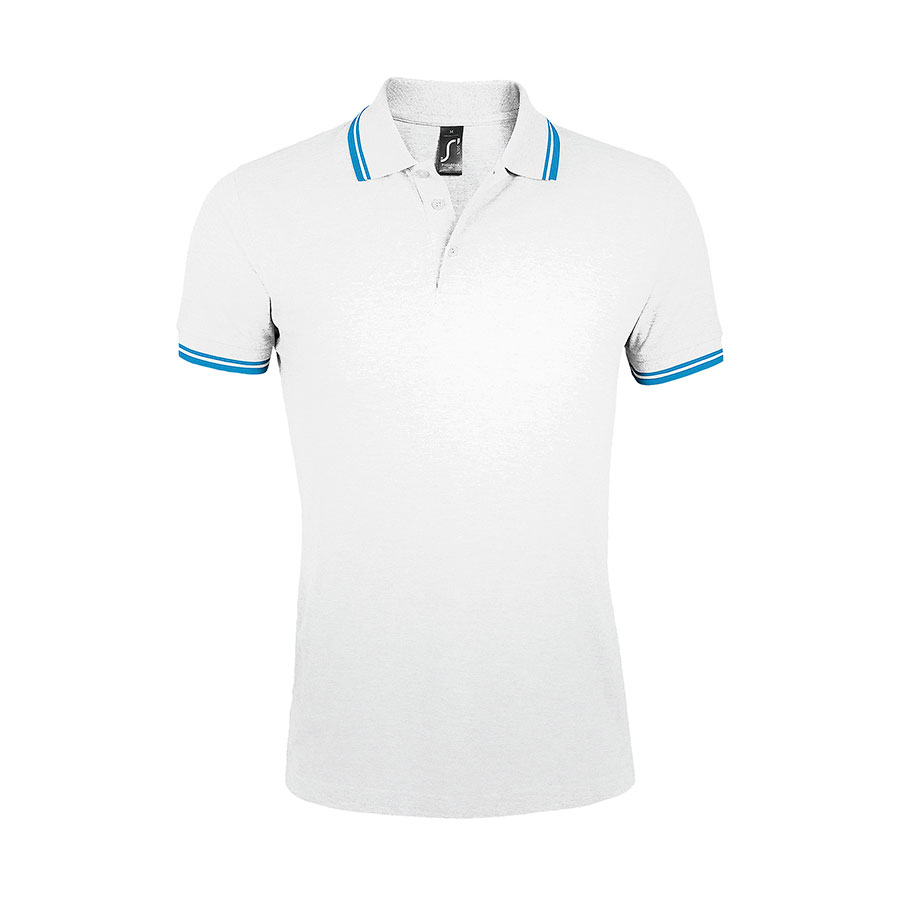 Поло «Pasadena Men» белый, голубой__S, 100% х/б, 200г/м2