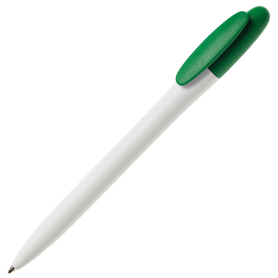 Ручка шариковая BAY, белый корпус/зеленый клип, непрозрачный пластик