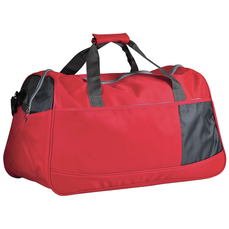 Сумка дорожная «Traveller»; красный с серым; 55х28х28,5 см; нейлон; шелкография
