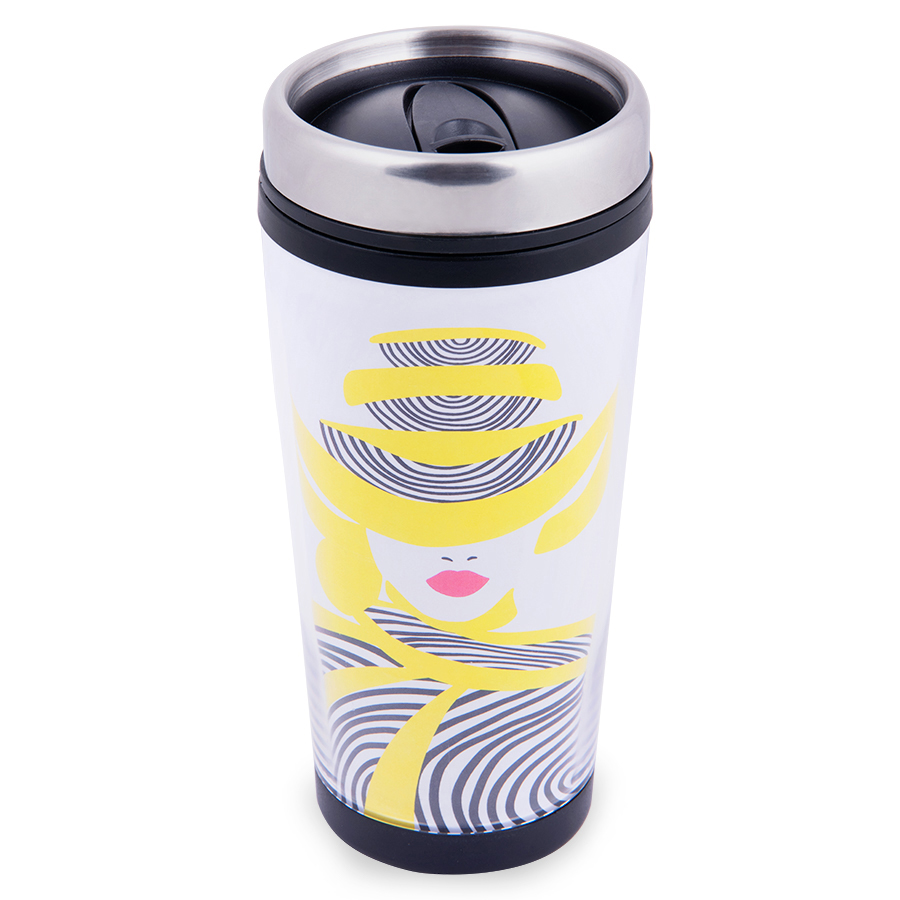 Термокружка DESK; 350 мл, пластик, металл, полиграфическая вставка 1