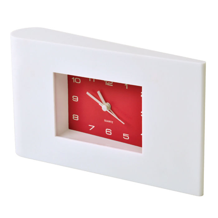 Часы настольные "Авангард" с будильником, белые с красным, 22,5х13х4 см, пластик 1
