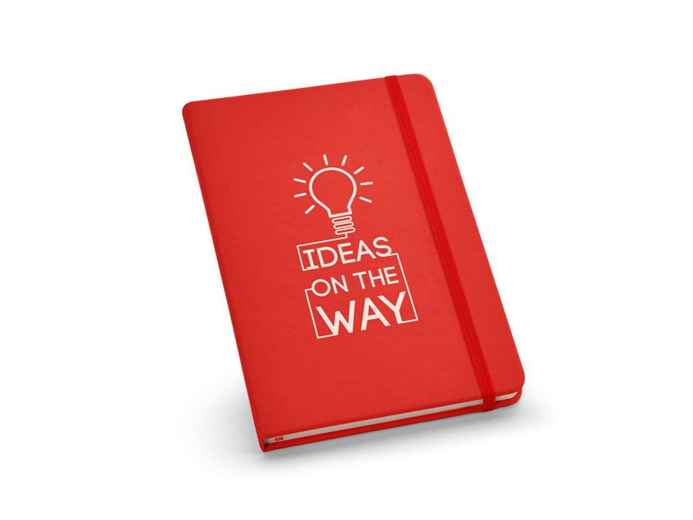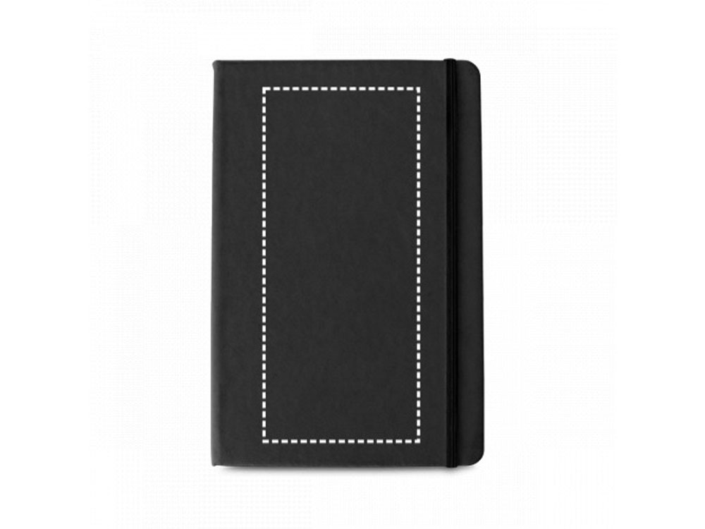 Блокнот формата A5, с 160 страницами без линовки, с твердой обложкой из искусственной кожи. Вид нанесения, рекомендуемый поставщиком: трансфер, трафаретная печать, уф- печать