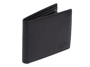 Бумажник мужской серии «Claim», включает в себя четыре отделения для кредитных карт, три боковых скрытых отделения, одно отделение для монет, закрывается на кнопку, два отделения для купюр, позволяющие хранить купюры в развернутом виде.
