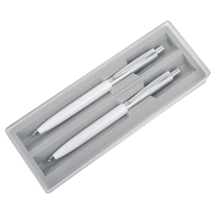 BUSINESS SET, набор: ручка шариковая и карандаш механический, белый/серебристый, металл/пластик