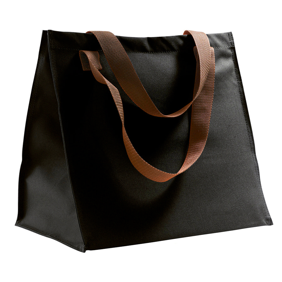 100% полиэстер 600DМагнитная застежкаВнутренний карман на молнииСъемное полиэтиленовое дноКонтрастные нейлоновые ручки для переноски