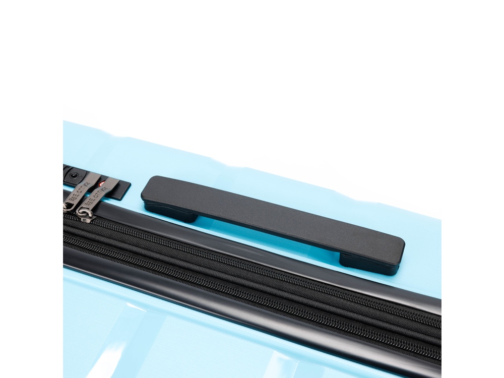 Каждый чемодан из серии «В ОТПУСК» оборудован удобной ручкой и удивительно легкими двойными колесами, что обеспечивает максимальную маневренность и комфорт во время путешествий.
