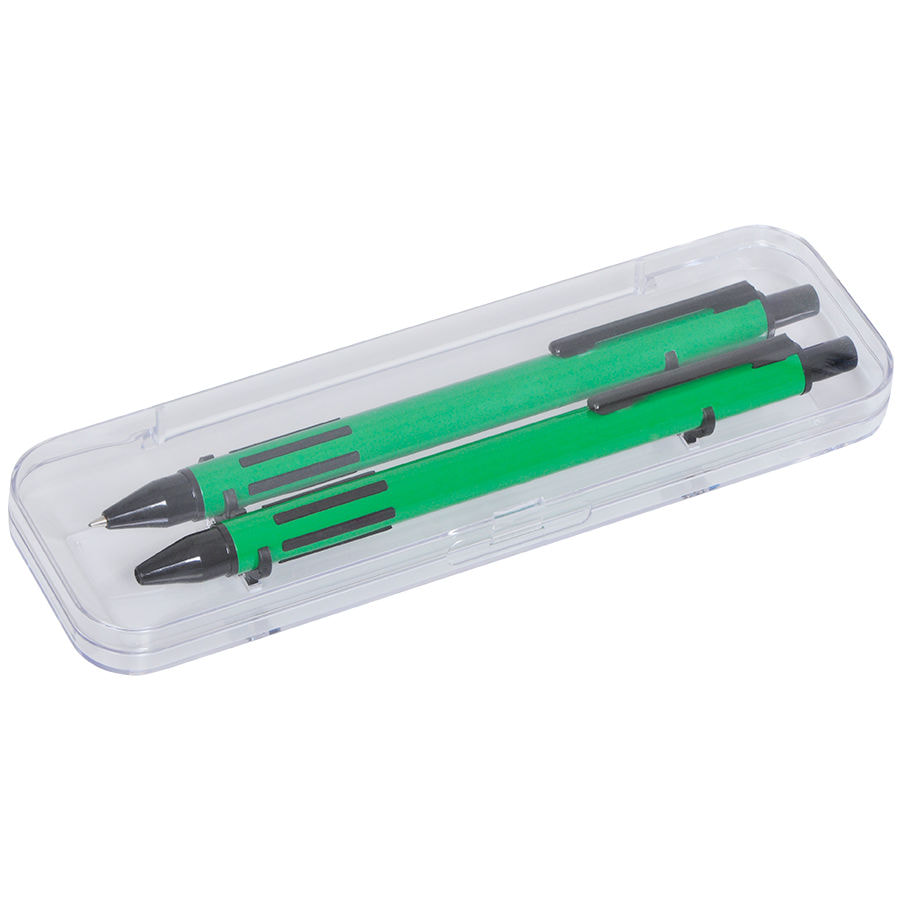 FUTURE, набор ручка и карандаш в прозрачном футляре, зеленый, пластик