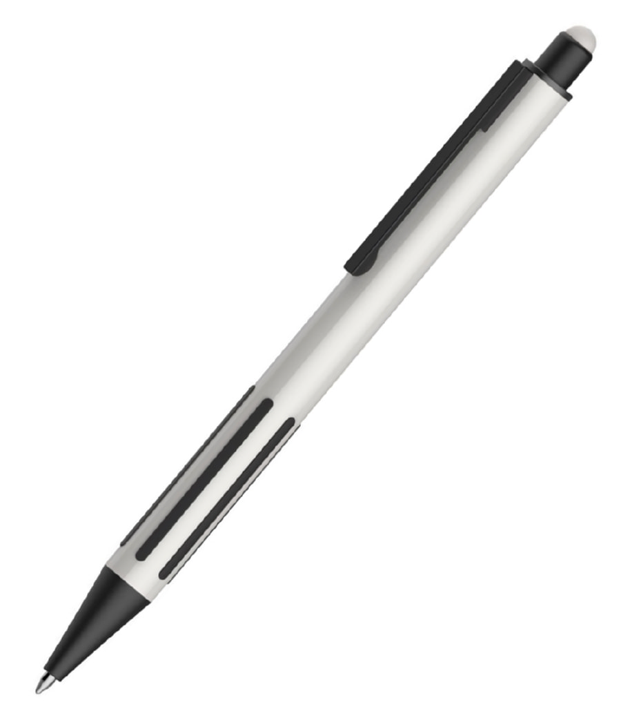 • Pantone, близкий к White.• Металлический корпус и клип. • Мягкие резиновые вставки в зоне захвата.• Нажимной механизм подачи стержня.• Пулевидный пишущий узел 1.0 мм.• Длина линии письма 1000 — 1200 м.• Оснащена стилусом.• Цвет чернил синий.• Сменный стержень Parker Type.• Виды нанесения: лазерная гравировка, тампопечать.