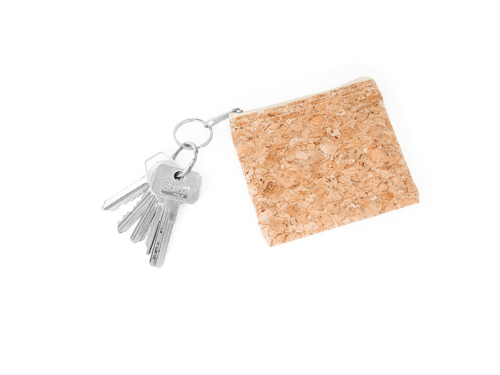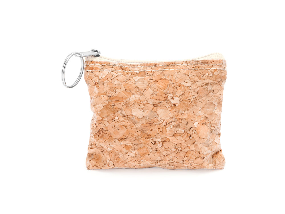 Кошелек из натуральной пробки с серебристым кольцом на застежке-молнии.