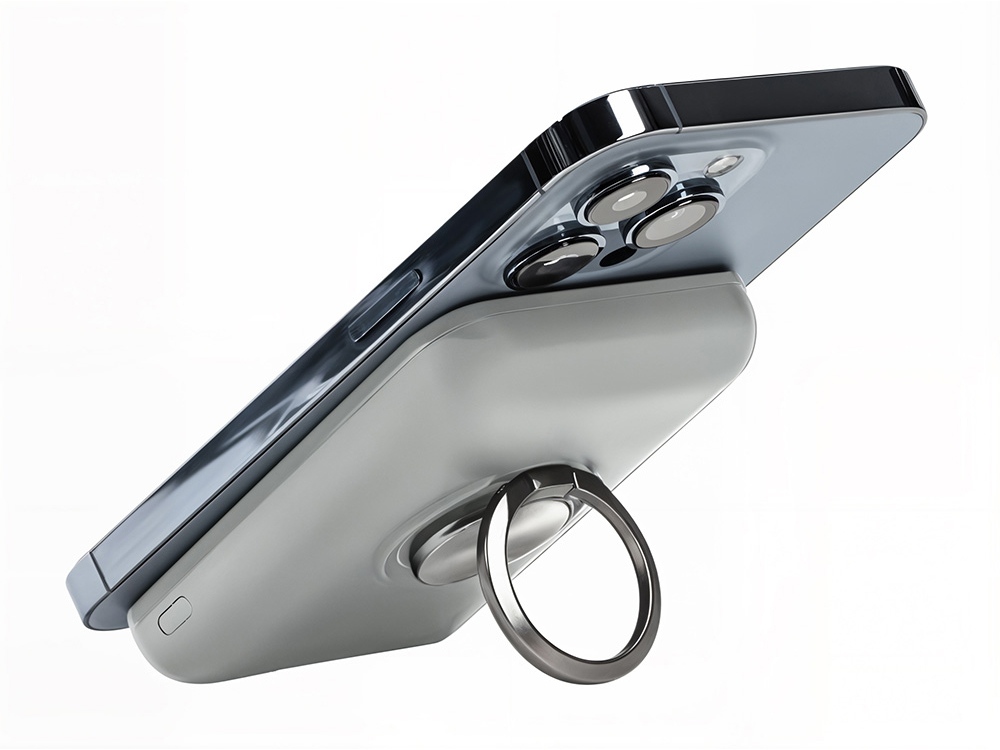 MagnetIQ надежно крепится к iPhone от 12 версии и новее при помощи сильных встроенных магнитов и заряжает по быстрой беспроводной зарядке 10 Вт. Также пауэрбэнк быстро заряжается по двойному USB-C кабелю из комплекта (при наличии USB-C сетевого адаптера мощностью от 18 Вт), и может заряжать быстро другие устройства по USB-C и USB-A портам. Внешний аккумулятор имеет встроенный металлический держатель-подставку на задней стороне, благодаря чему удобно держать заряжаемый смартфон в руках или устанавливать смартфон на рабочем столе. В комплекте есть металлическое кольцо для беспроводной зарядки смартфонов без встроенных магнитов. В базовой комплектации — двунаправленный кабель USB-C с поддержкой быстрой зарядки и кабель для проводной зарядки прежних iPhone USB — Lightning.