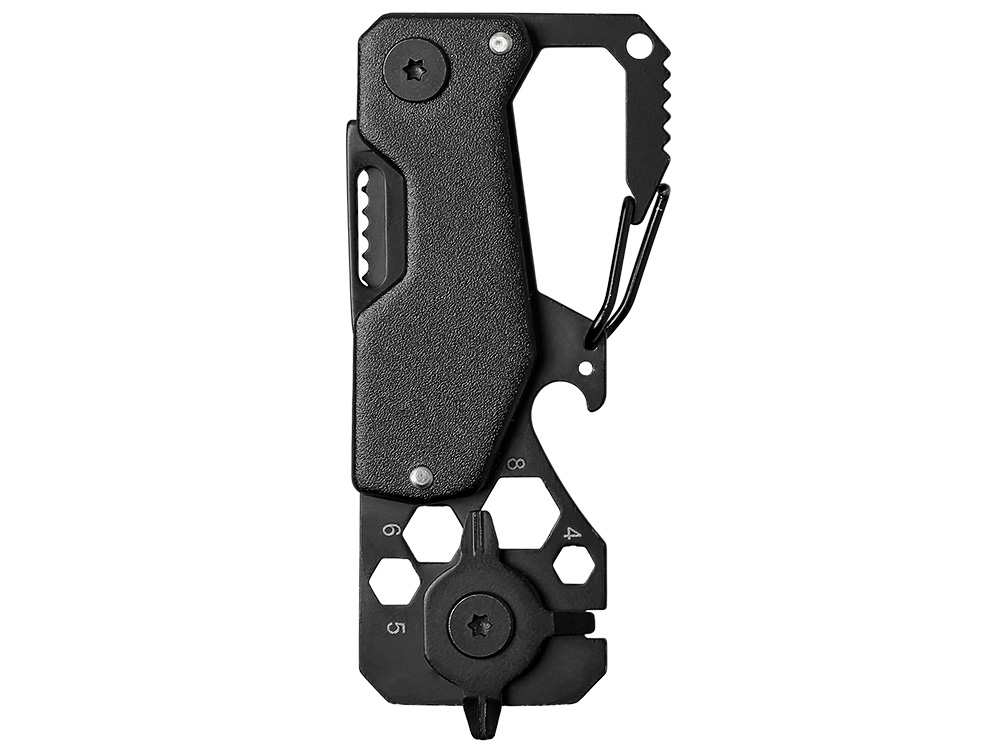 Всегда под рукой. Идеальный компаньон для ключей или кармана. Этот мультитул Roq разработан для тех, кто ценит минимализм, но не хочет терять функциональность. Складное лезвие ножа, набор гаечных ключей, три отвертки, линейка, открывалка — всё это в одном легком корпусе. Благодаря встроенному карабину, инструмент всегда пристегнут к рюкзаку или поясу, готовый к использованию в любую секунду.