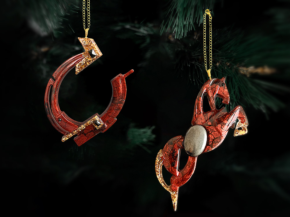 Игрушки бережно упакованы в стильную коробку из плотного премиального картона с индивидуальным ложементом, который надёжно фиксирует игрушку. Такой презент не требует дополнительной упаковки и готов порадовать своего обладателя. Для вашего удобства к каждой игрушке прилагается элегантная цепочка или ленточка, с помощью которой вы легко сможете подвесить их на ёлку.