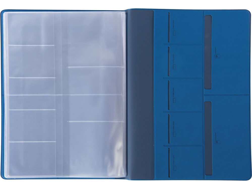 — 6 горизонтальных кармана 10 х 14 см с подписями и иконками, уточняющими тип документа, который можно поместить внутрь