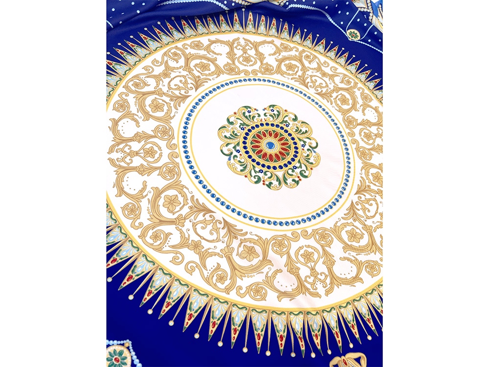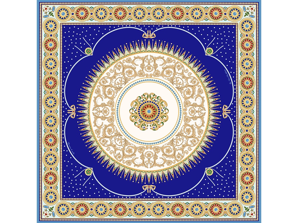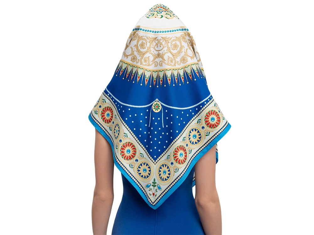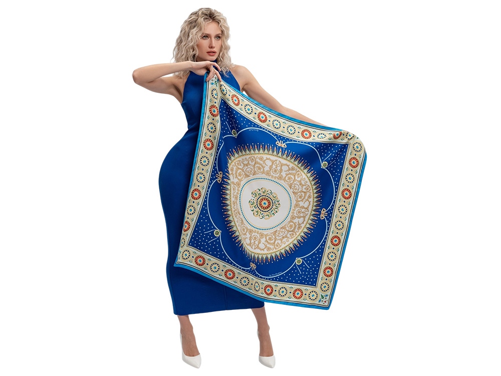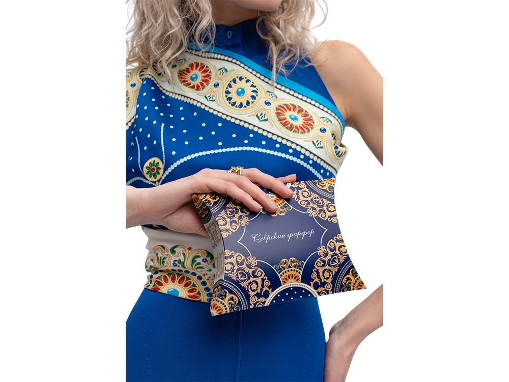 Платок «Севрский фарфор» создан брендом «Русские в моде» совместно с Музеем-заповедником «Павловск» и вдохновлен бесценным шедевром из исторической коллекции Павловского дворца – Севрским фарфоровым сервизом.