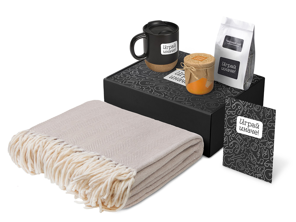 | Материал товара | плед — 100% хлопок, кружка — керамика, пробка, чай -пластик, мешок — нектаный материал (спанбонд), коробка -картон |