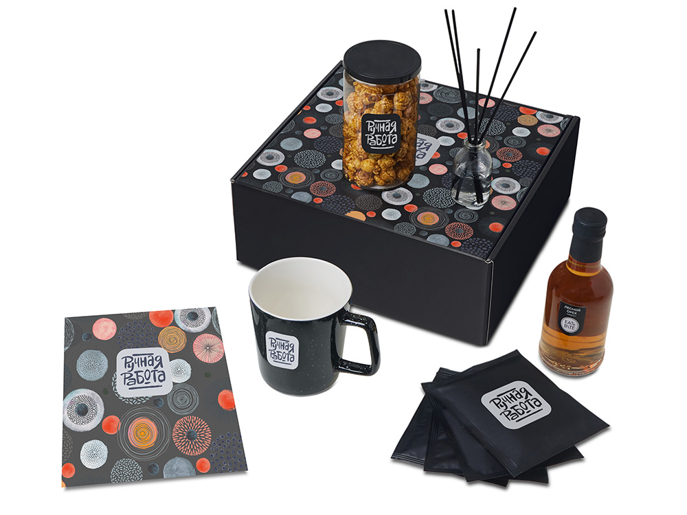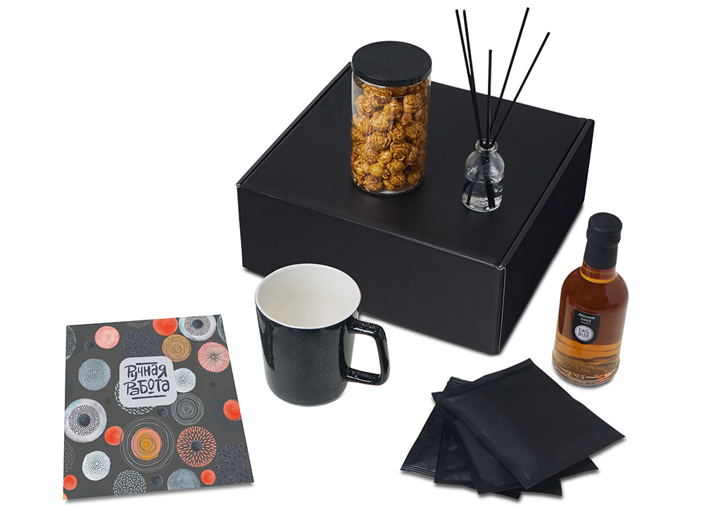 | Материал товара | диффузор — стекло, кофе в дрип пакете — пластик, кружка — костяной фарфор, попкорн — пластик, металл, мешок — нетканый материал (спанбонд), коробка — картон |