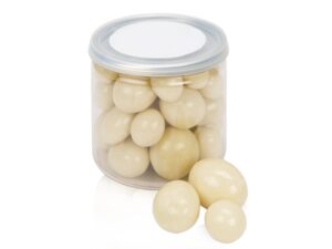 Набор состоит из кружки, ягод малины в йогуртовой глазури, фруктового чая, ситечка для заварки. Набор упакован в крафтовую картонную коробку с бумажным наполнителем.
