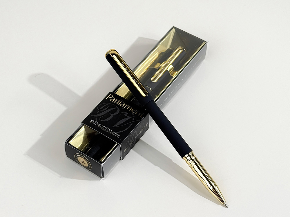 Ручка «Parliament» с чернилами на масляной основе синего цвета отличается мягким письмом и толщиной линии 0,5 мм. Ее прорезиненный корпус soft-touch обеспечивает комфорт при длительном использовании, а отвинчивающийся наконечник облегчает доступ к сменному стержню. Колпачок с клип-зажимом обеспечивает удобное крепление ручки на одежде или сумке. Качество письма обеспечивается премиальным швейцарским пишущим узлом диаметром 0,7 мм от производителя Premec и немецкими чернилами марки Dokumental. Ручка упакована в индивидуальную подарочную упаковку.