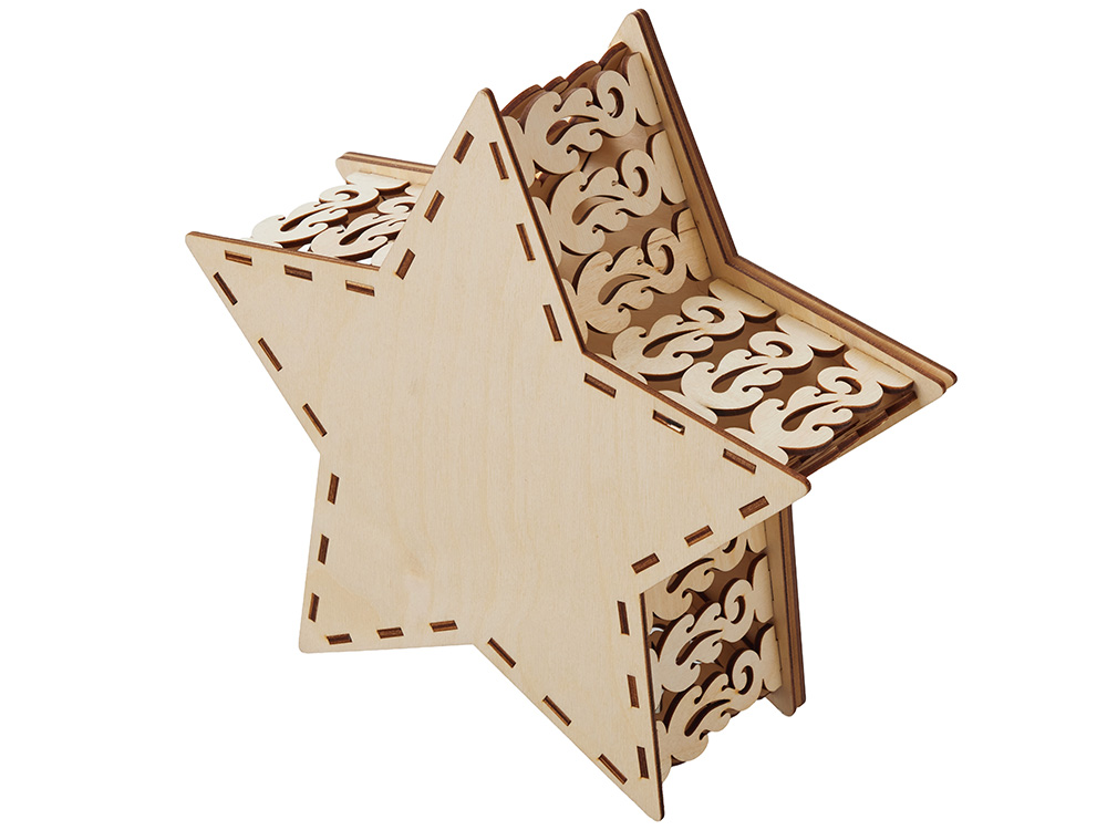 Шкатулка из натуральной берёзовой фанеры в форме звезды — отличный вариант упаковки для небольших подарков. Минималистичный дизайн и качественный материал подчёркивают аккуратность и внимание к деталям. После вручения её можно использовать для хранения украшений и приятных мелочей.