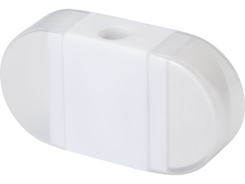 Точилка для карандашей с ластиком и прозрачными колпачками с обеих сторон. Размер: 6,2 x 3,3 x 1,6 см. Пластик ABS, Пластик TPR.