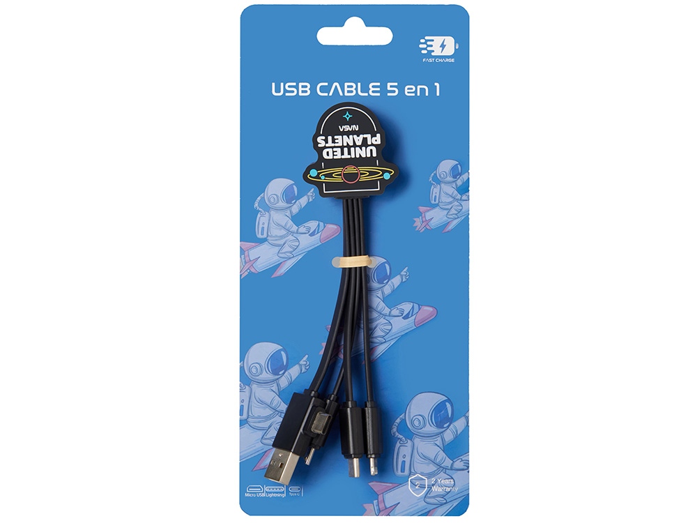 Зарядный кабель 5-в-1 с возможностью изготовления корпуса по индивидуальному дизайну клиента — это универсальный зарядный кабель 5-в-1, который заменит целый набор проводов. Два входа (USB-A и Type-C) и три выхода (Type-C, Lightning, Micro USB) обеспечивают совместимость с любыми устройствами — от новейших смартфонов до классической техники. Максимальная мощность 10 Вт гарантирует стабильную и безопасную зарядку.