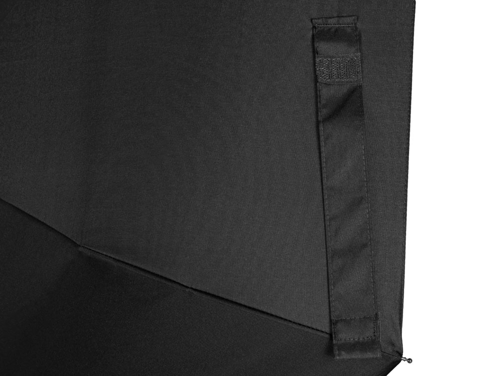 Купол зонта выполнен из переработанного пластика. Гибкие спицы из стекловолокна делают зонт стойким к порывам ветра. Удобная ручка софт тач. Фиксирующая купол застежка на липучке шириной 3 см — дополнительная опция для нанесения вашего логотипа.